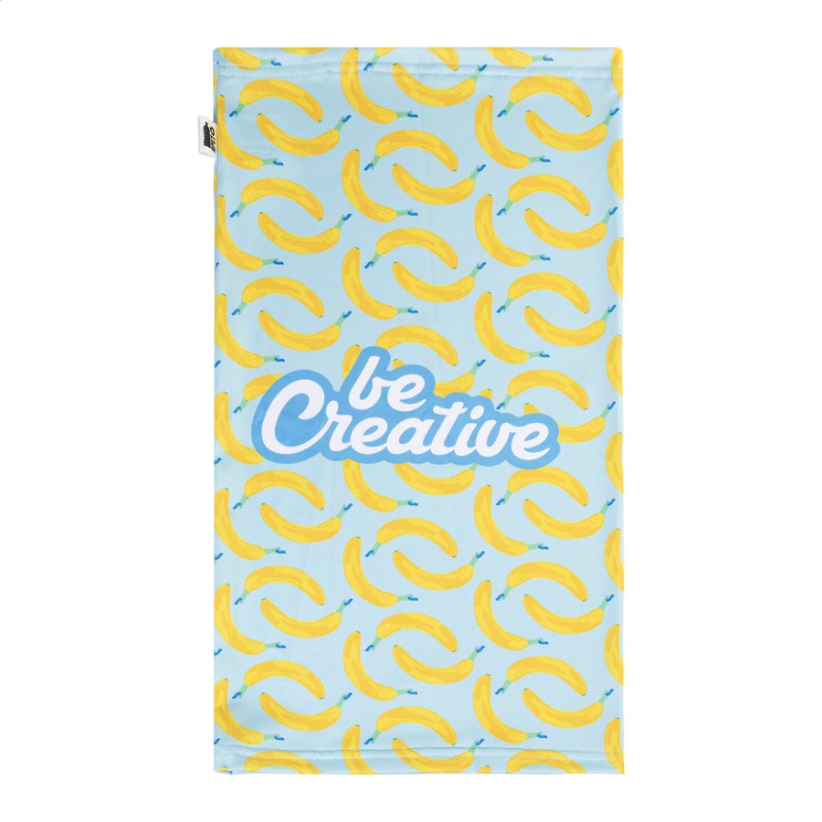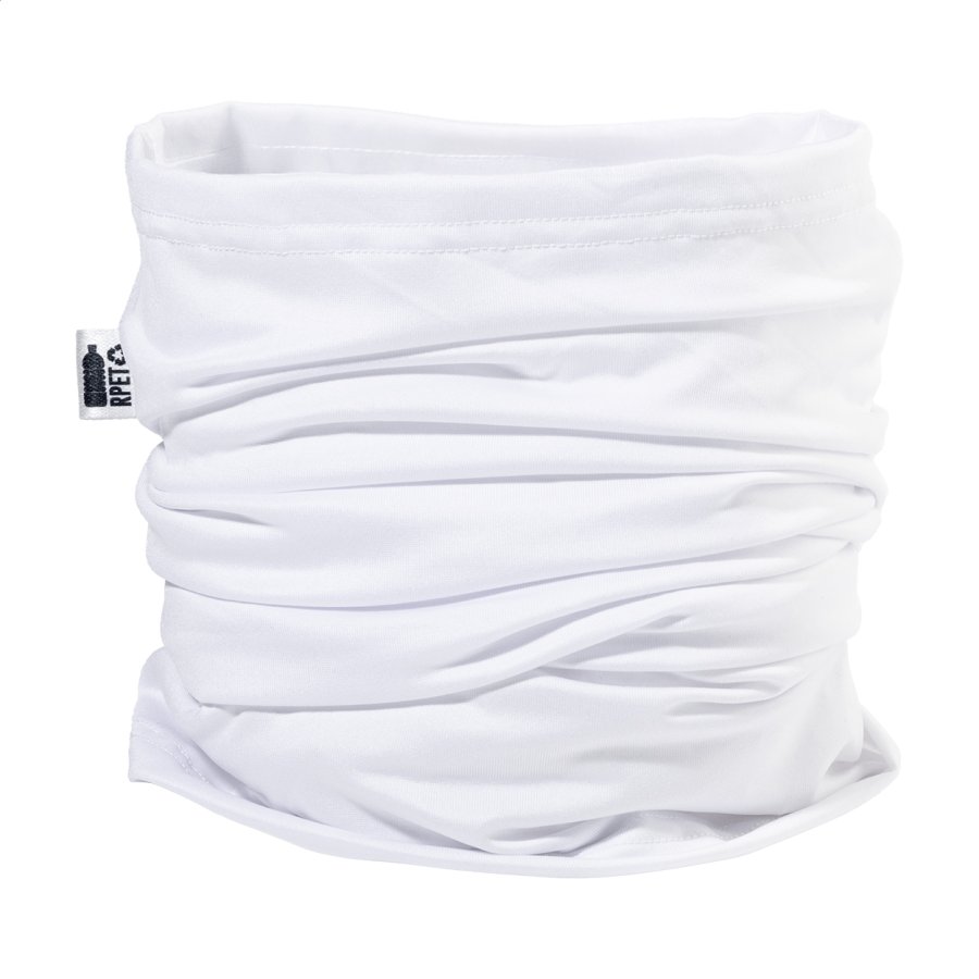Na zakázku vyrobený víceúčelový šátek z RPET s celoplošným sublimačním potiskem. 92 % RPET polyester a 8 % elastan (185 g/m²), s výraznou RPET etiketou. Cena nezahrnuje tiskovou přípravu. Min. mn.: 50 ks.