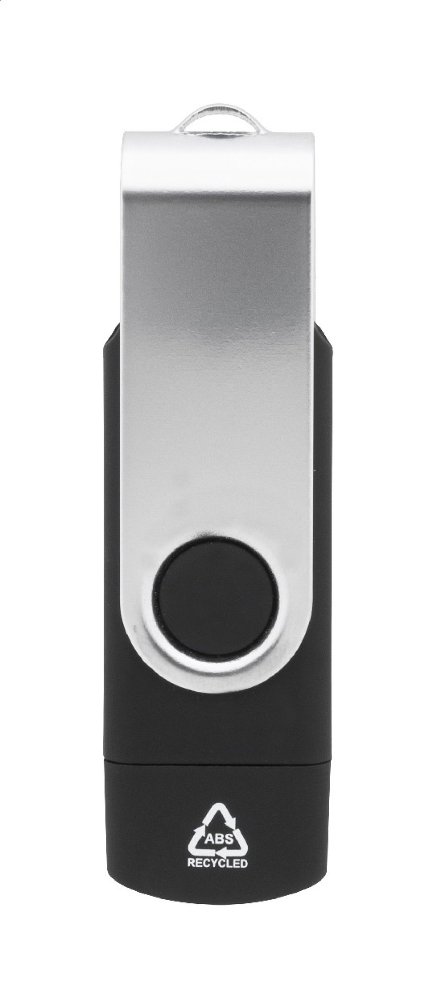 Otočný USB flash disk OTG v pouzdře z recyklovaného ABS a kovu s pamětí 8/16/32 GB. S připojeními USB a USB-C. USB 2.0.