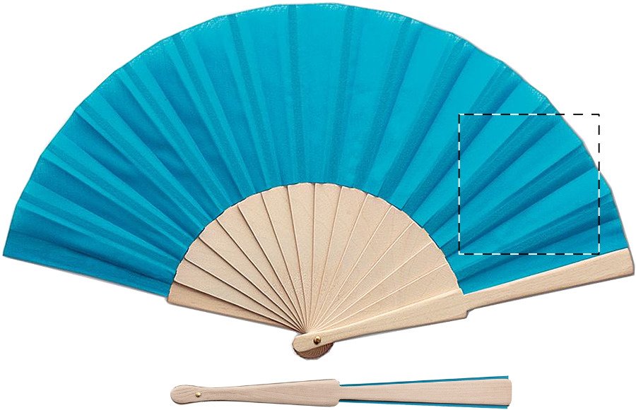 Ruční vějíř z polybavlny s dřevěnými žebry.