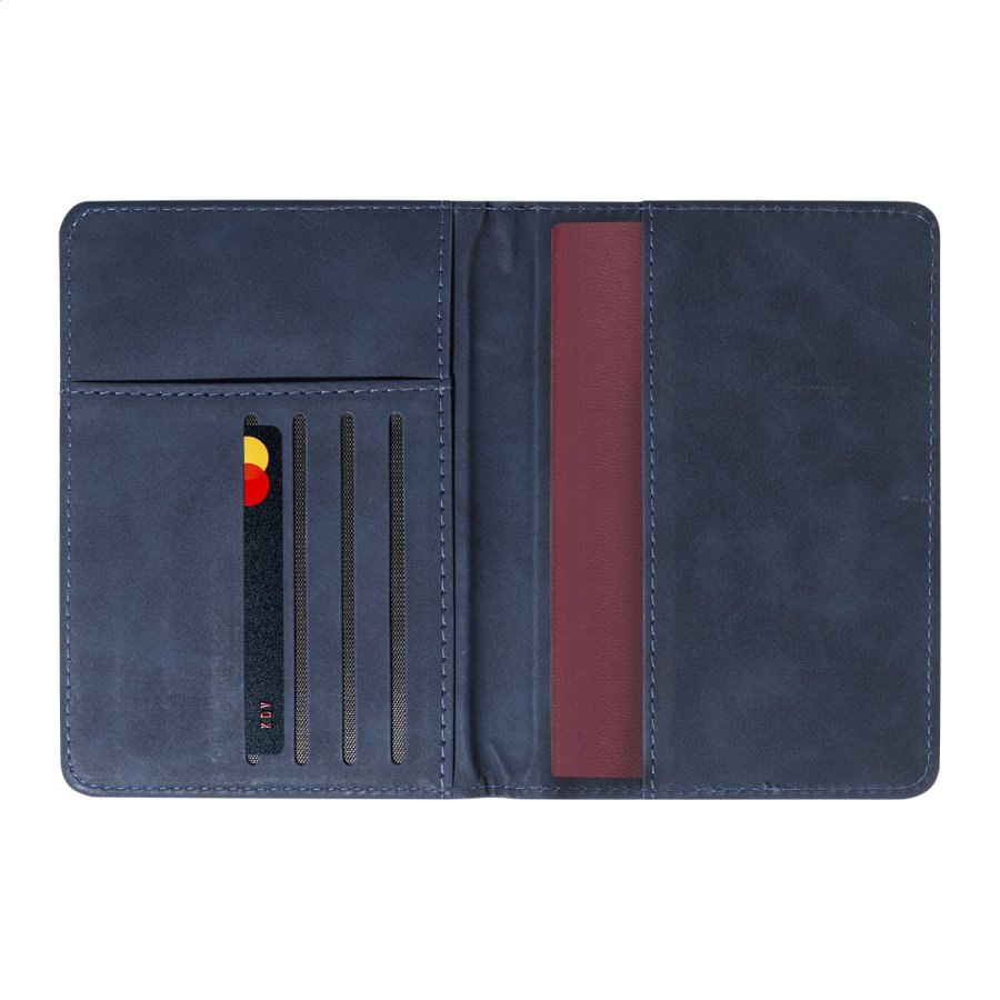 Sada pouzdra na pas a visačky na zavazadla z recyklované umělé kůže. V krabičce z kraftového papíru.