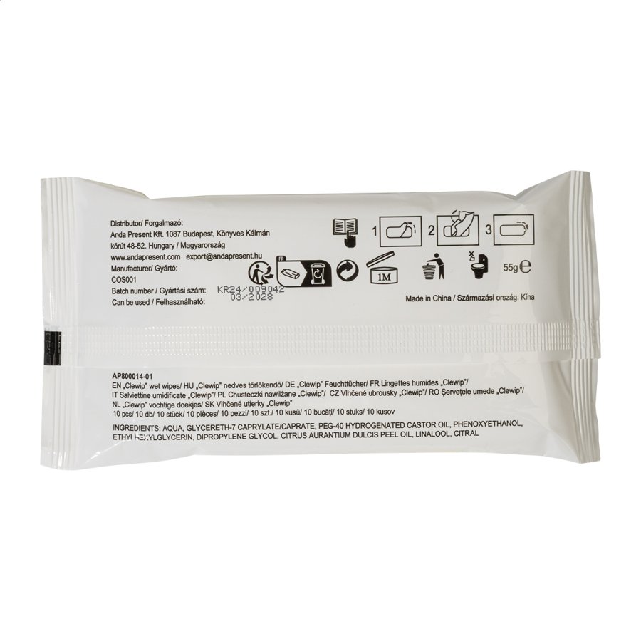 10 ks vlhčených ubrousků v uzavíratelném sáčku s bílým uzávěrem. Rozměr rozloženého ubrousku: 19×16 cm. Ideální pro tamponový tisk nebo celobarevné vinylové samolepky.