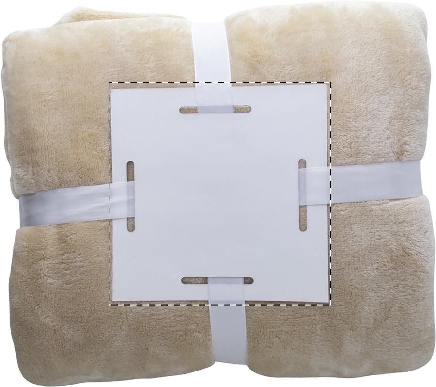 Flanelová fleecová deka, 280 gr/m². Zabaleno bílou stuhou s potisknutelnou papírovou kartou.