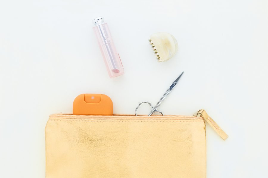 Kosmetická taštička na zip z PU kůže s metalickým povrchem.