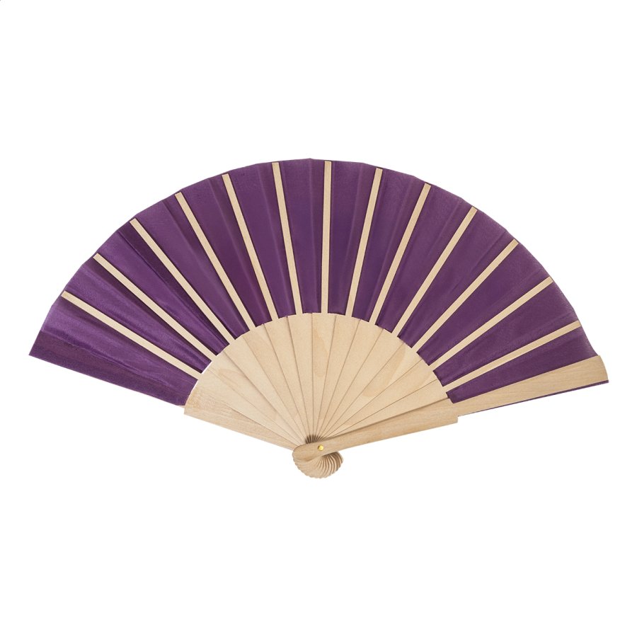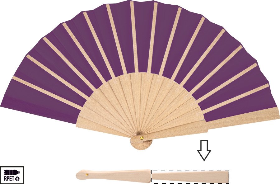 Vějíř z RPET polyesteru s dřevěnými žebry.