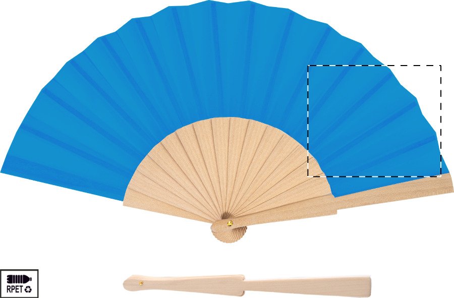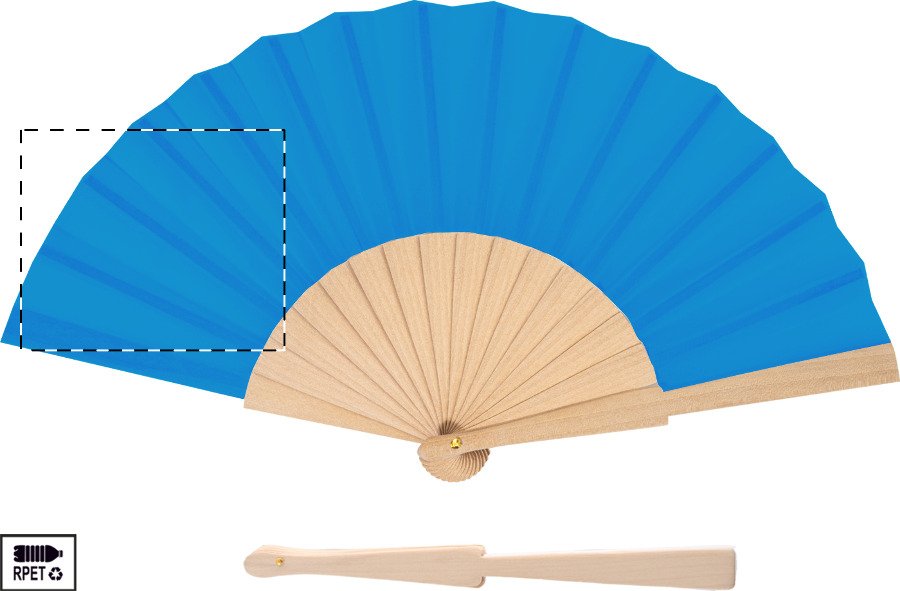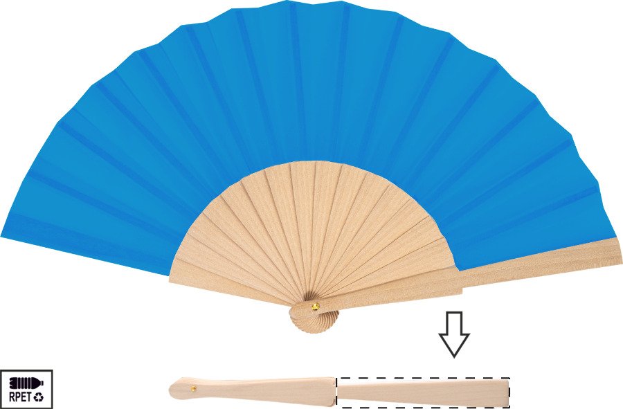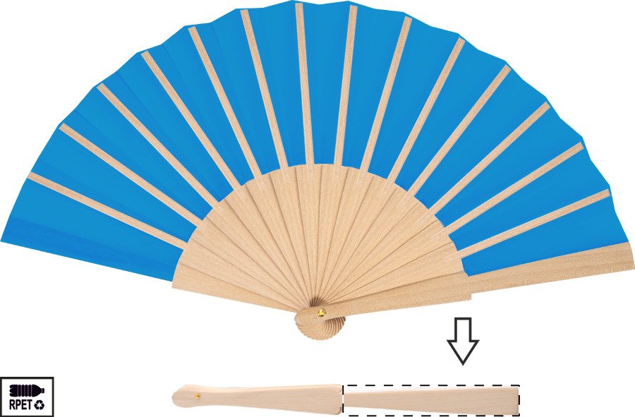 Vějíř z RPET polyesteru s dřevěnými žebry.