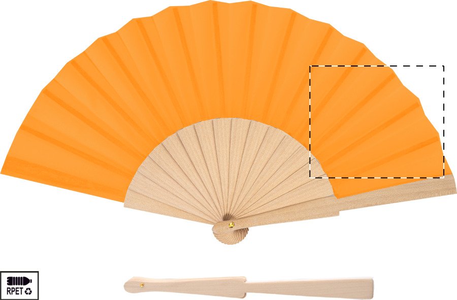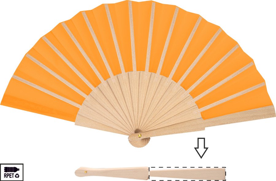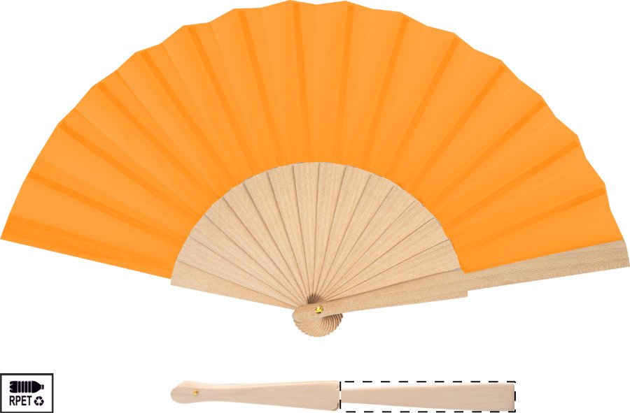 Vějíř z RPET polyesteru s dřevěnými žebry.