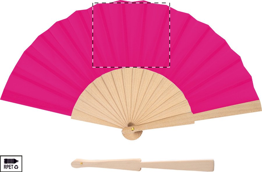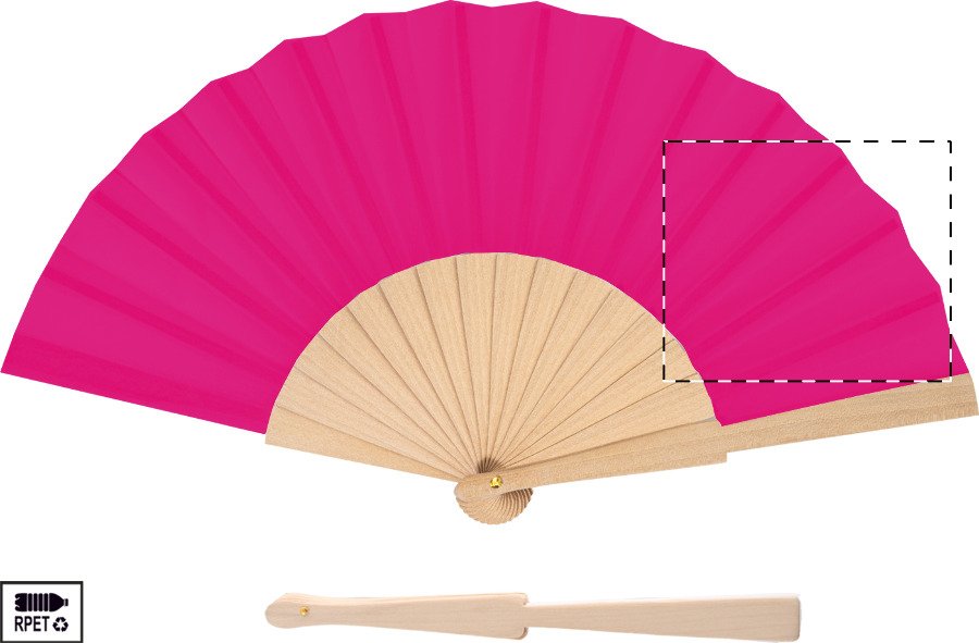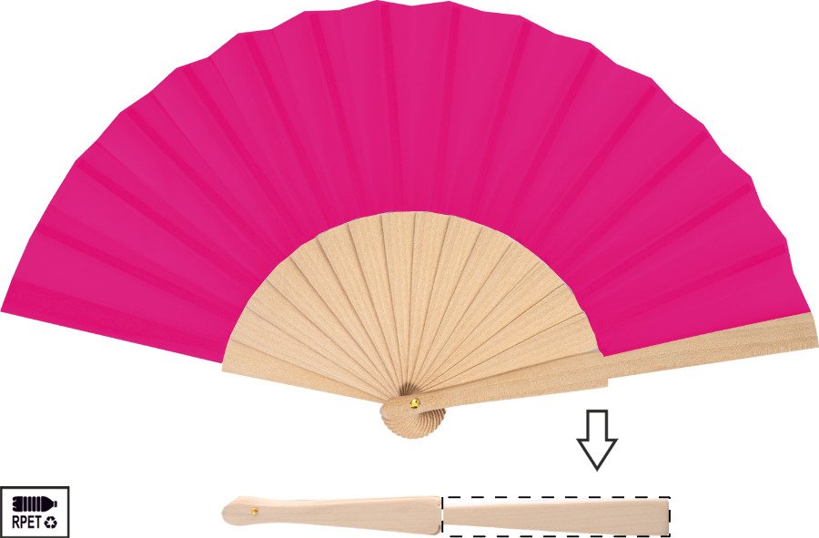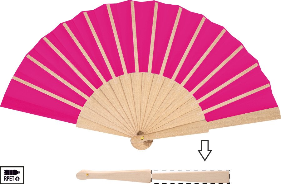 Vějíř z RPET polyesteru s dřevěnými žebry.