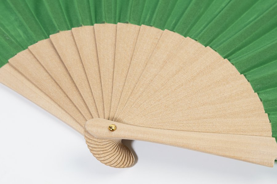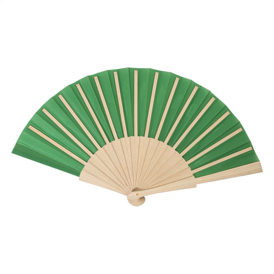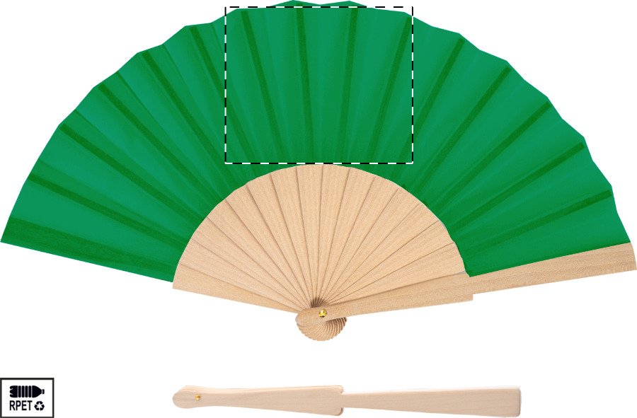 Vějíř z RPET polyesteru s dřevěnými žebry.