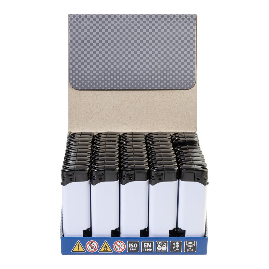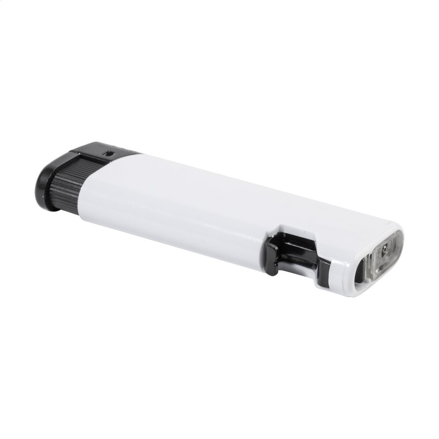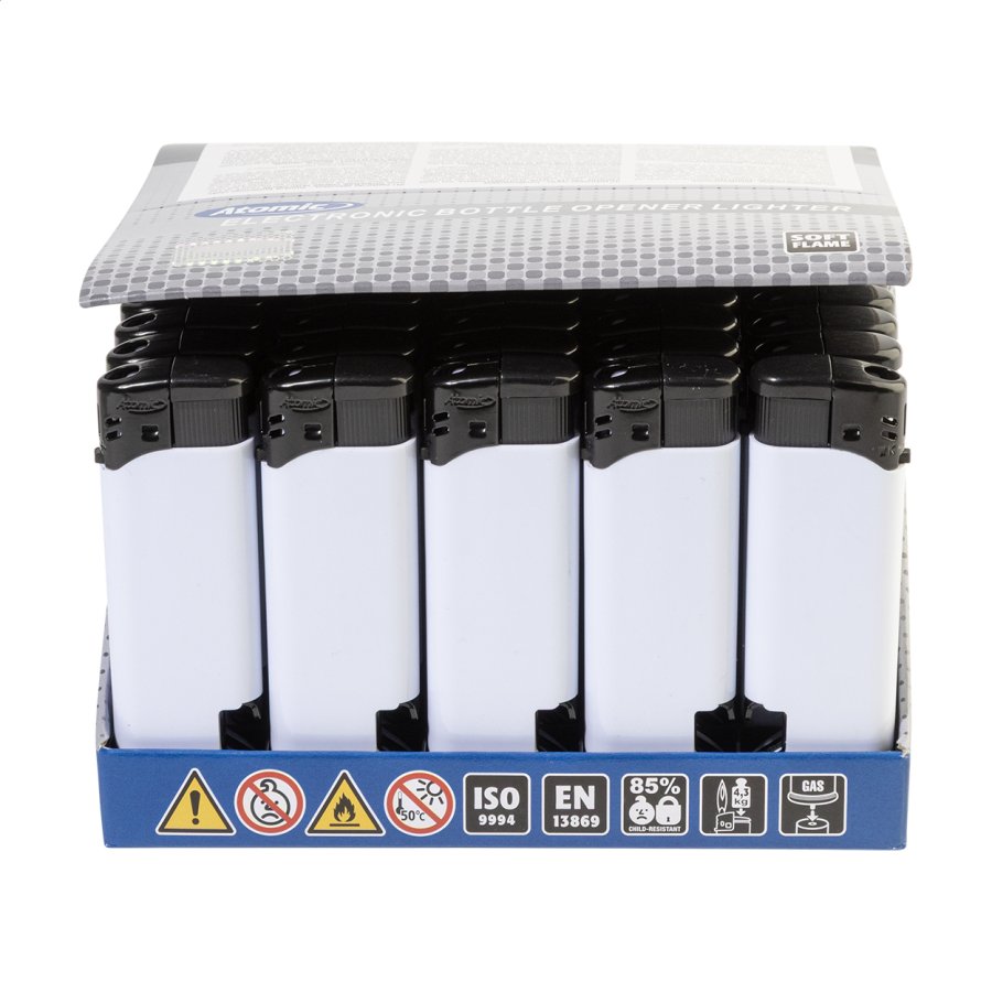 Plnitelný plastový piezoelektrický zapalovač s otvírákem. Dětská pojistka. Do dává se s přibližně 80% hladinou plynu. K dispozici pouze v plném exportním kartonovém množství (násobky 500 kusů)!