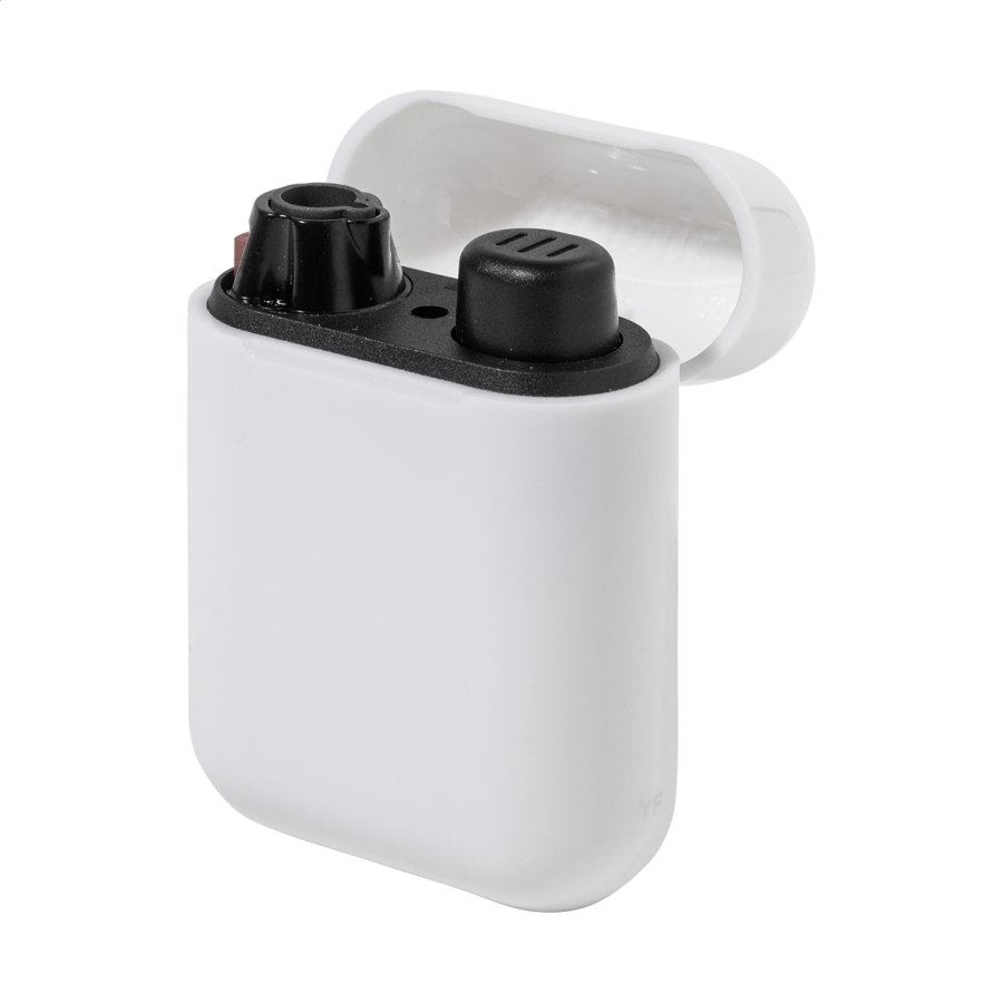 Plnitelný plastový piezoelektrický zapalovač v moderním pouzdře inspirovaném designem moderních bezdrátových sluchátek. Dětská pojistka. Do dává se s přibližně 80% hladinou plynu. K dispozici pouze v plném exportním kartonovém množství (násobky 500 kusů)!