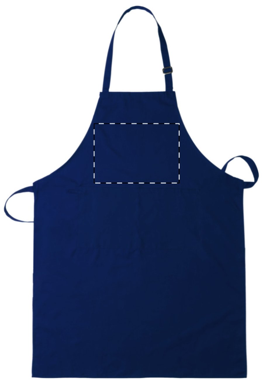 Barevná zástěra s předními kapsami. Materiál 80% polyester/20% bavlna.