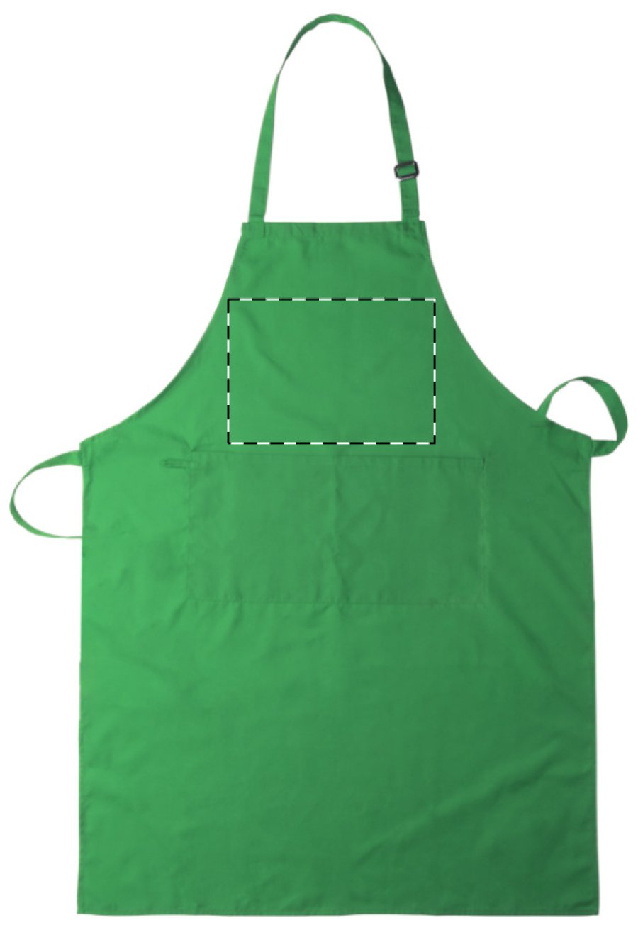 Barevná zástěra s předními kapsami. Materiál 80% polyester/20% bavlna.