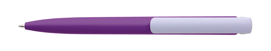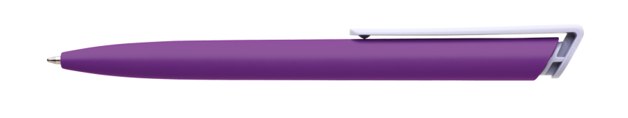 Česká propiska BOIA v minimalistickém designu fialového oválného těla s dynamickým tvarem bílého masivního klipu. Tělo i klip nabízí velký prostor pro značení logem zákazníka. Materiál plast, náplň velkoobsahová, modře píšící. BOIA je vyráběna v České republice.