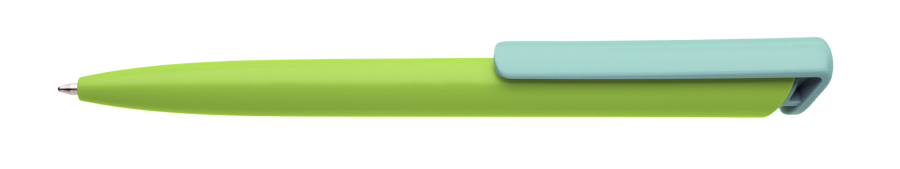 Česká propiska BOIA v minimalistickém designu světle zeleného oválného těla s dynamickým tvarem zeleného foamo masivního klipu. Tělo i klip nabízí velký prostor pro značení logem zákazníka. Materiál plast, náplň velkoobsahová, modře píšící. BOIA je vyráběna v České republice.