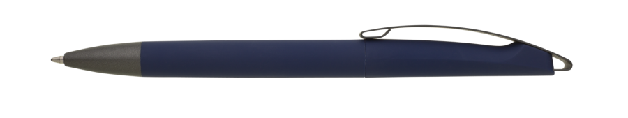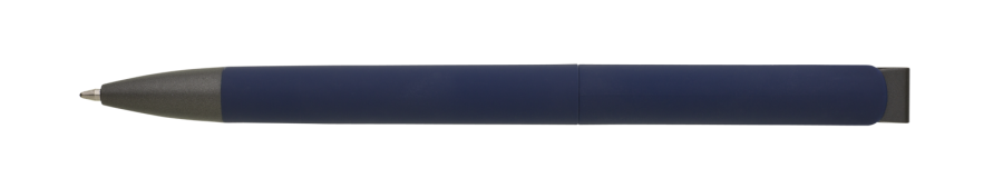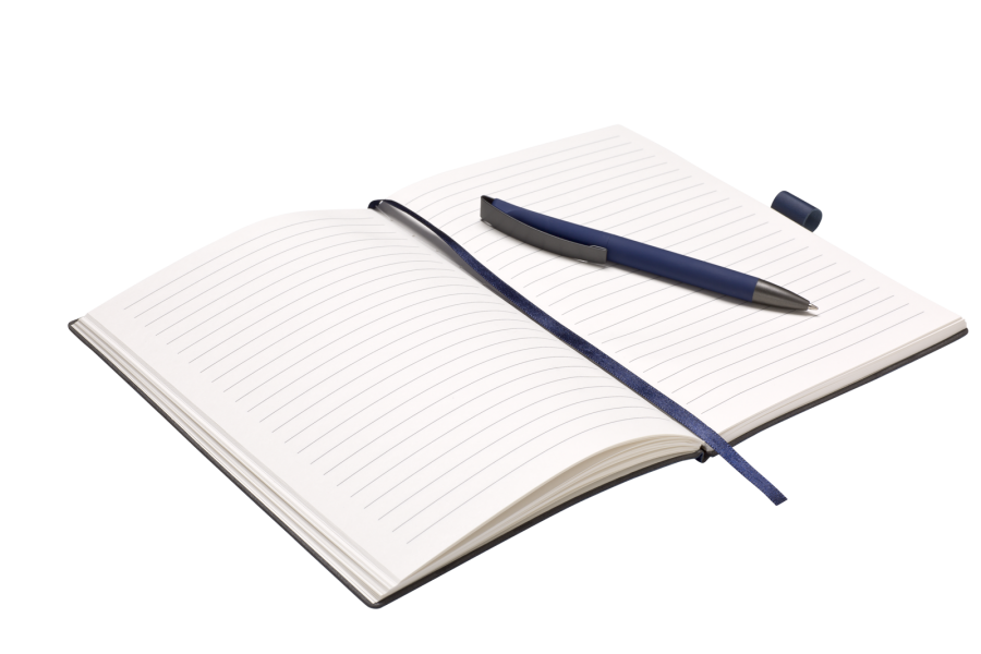 Elegantní zápisník A5 v PU deskách s 80 bílými linkovanými stranami a plastovou propiskou s pogumovaným povrchem a modře píšící náplní X20. Blok má uzavírací gumičku, poutko na propisku a textilní záložku v barvě desek.