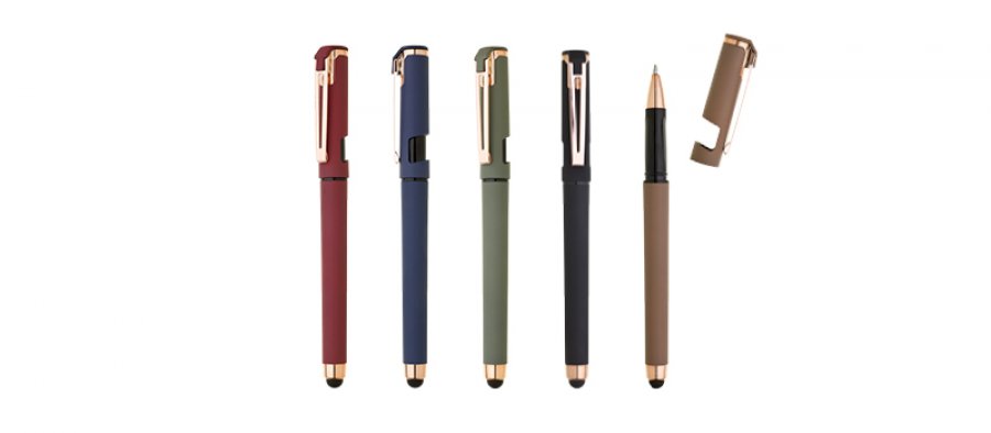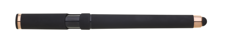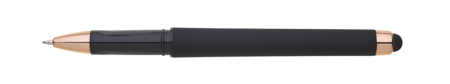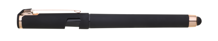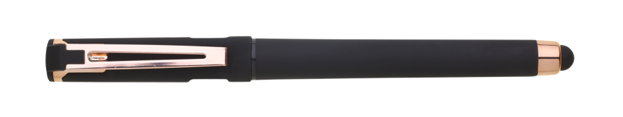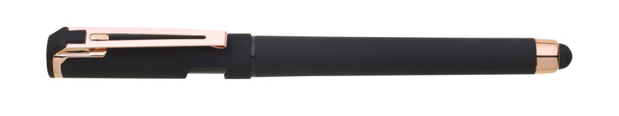 Elegantní gelové pero ROSEO SOFT GEL se soft povrchem, touch koncovkou a doplňky v růžovo-zlaté barvě. Pero má gelovou velkoobsahovou náplň, která píše modře.