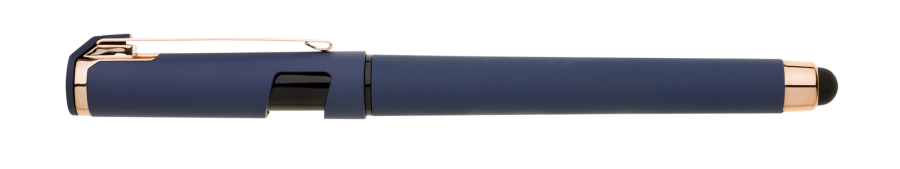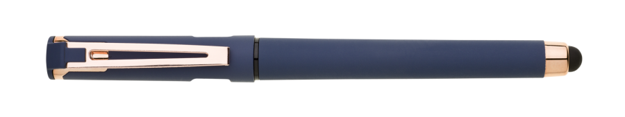 Elegantní gelové pero ROSEO SOFT GEL se soft povrchem, touch koncovkou a doplňky v růžovo-zlaté barvě. Pero má gelovou velkoobsahovou náplň, která píše modře.