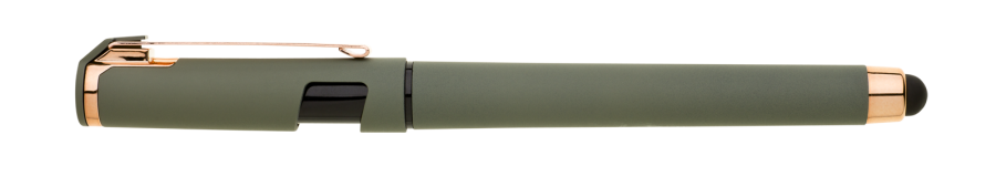 Elegantní gelové pero ROSEO SOFT GEL se soft povrchem, touch koncovkou a doplňky v růžovo-zlaté barvě. Pero má gelovou velkoobsahovou náplň, která píše modře.