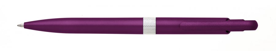 Plastové, kuličkové pero FIROL má fialové, metalické tělo se stříbrným rýhovaným proužkem uprostřed. Náplň velkoobsahová, modře píšící. Kolekce DESIGN.