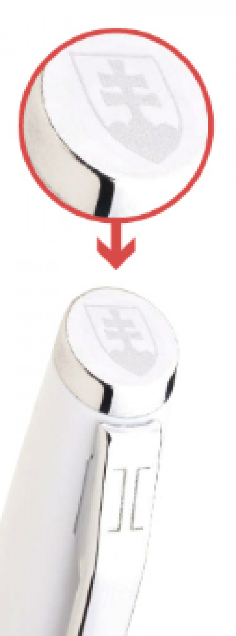Bílá otočná propiska s trikolórou a tiskem znaku Slovenské republiky. Náplň velkoobsahová, modře píšící.