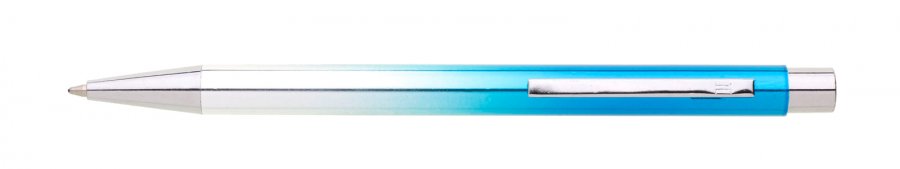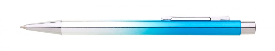 Kovová propiska ALTRO s lesklým povrchem a přechodovou tyrkysovou barvou.