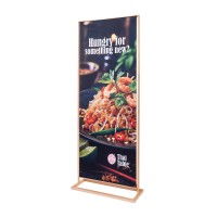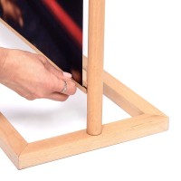 Dřevěný banerový stojan Rustic je dokonalou kombinací odolnosti a stylu. Je vyroben z tvrdého bukového dřeva, které je mimořádně pevné a odolné. Tento stojan je ideálním řešením pro jakoukoli propagaci v interiéru. Motiv kdykoliv snadno vyměníte, navíc vaše stopa bude ekologická, neboť polyesterové lemování (100% PES) na horní a spodní straně baneru je zcela bez obsahu PVC. Ať už se jedná o branding, uvítací zprávy nebo propagační akce, je to ideální stojan, který využijete na akcích, ve veřejných prostorách nebo v pohostinství.