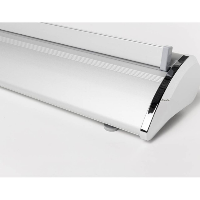 Výrazný stojan se špičkovým vzhledem: ideální pro stylovou prezentaci. Rollup Roll-Banner Premium Clamp má elegantní kazetu s bočními záslepkami ve tvaru slzy.