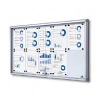 Interiérová vitrína s posuvnými dveřmi s protipožární certifikací v různých rozměrech, se stříbrným rámem. Popisovatelná a magnetická kvalitní lakovaná kovová záda pro uchycení Vašeho informačního materiálu. Vnitřní hloubka činí 30 mm. Díky oblým rohům a tvrzeným skleněným dveřím je vitrína maximálně bezpečná. Vitrína je osazena cylindrickým zámkem. Ideální pro použití v koridorech, chodbách a požárních evakuačních cestách.
